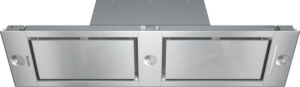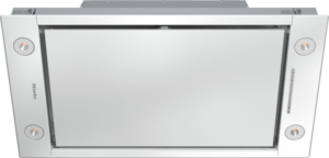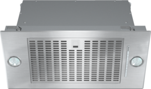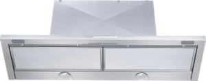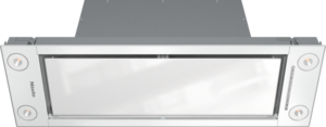 Exaustor de encastrar com iluminação LED económica e teclas para operação confortável.
