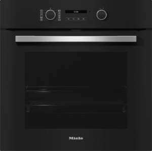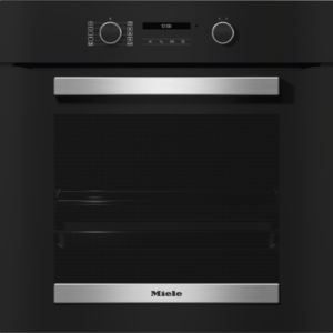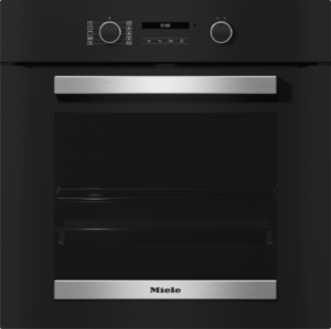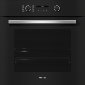 Forno em design preto elegante com ligação em rede, pirólise e calhas FlexiClip.