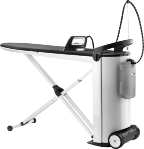Sistema de engomar a vapor Professional com um reservatório de água maior para engomagem e resultados perfeitos.