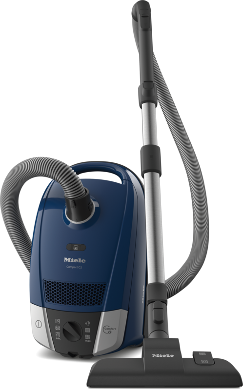 Aspirador com saco com sistema Compact para arrumação em pouco espaço.