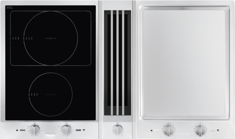 ProLine com exaustor de bancada composto por 1 placa de indução e 1 Teppan Yaki com exaustor ao centro.