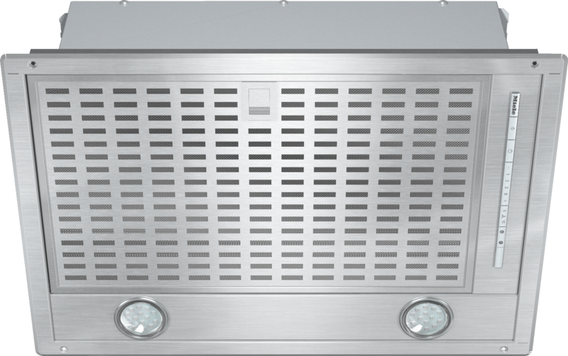 Exaustor de encastrar com iluminação LED económica e teclas para operação confortável.