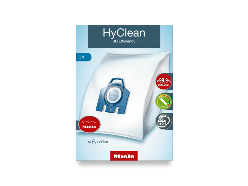 Sacos de pó HyClean 3D Efficiency GN para que o pó aspirado permaneça fechado de forma segura.