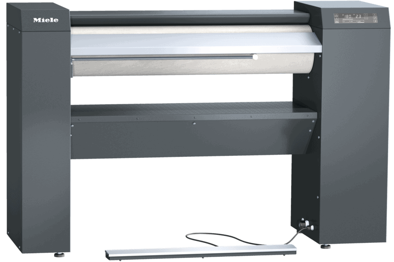 | Modelo | Entrada e saída de roupa pela frente Entrada e saída frontal A calandra em funcionamento necessita apenas um mínimo de espaço, pois pode ser instalada encostada à parede. |