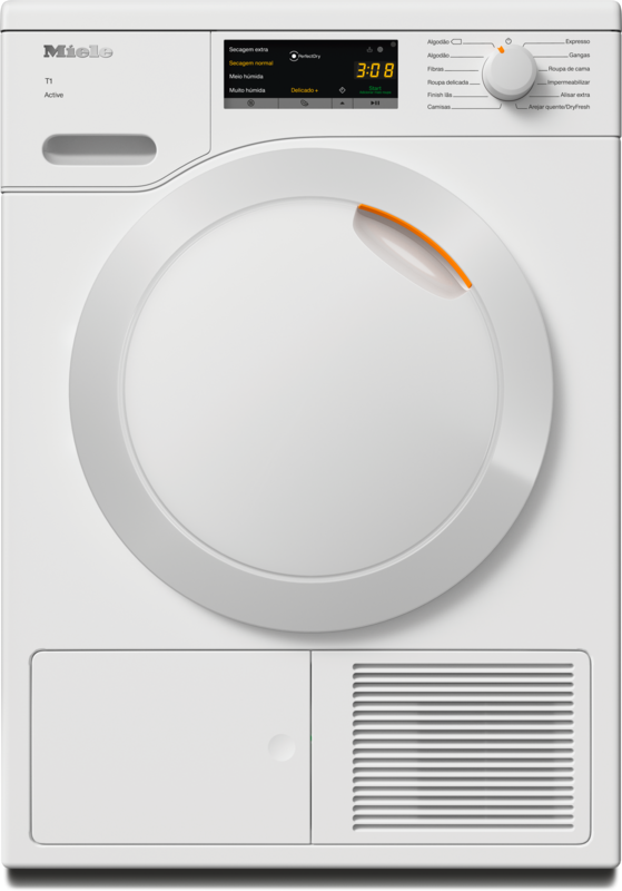 Máquina de secar roupa com bomba de calor T1 com eficiência A++ e excelente qualidade Miele.