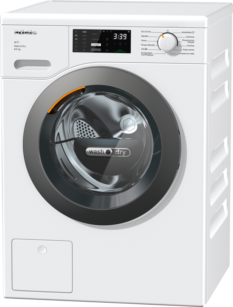 Máquina de lavar e secar roupa WT1 com tecnologia PerfectCare para tratamento mais delicado e eficiente da roupa.
