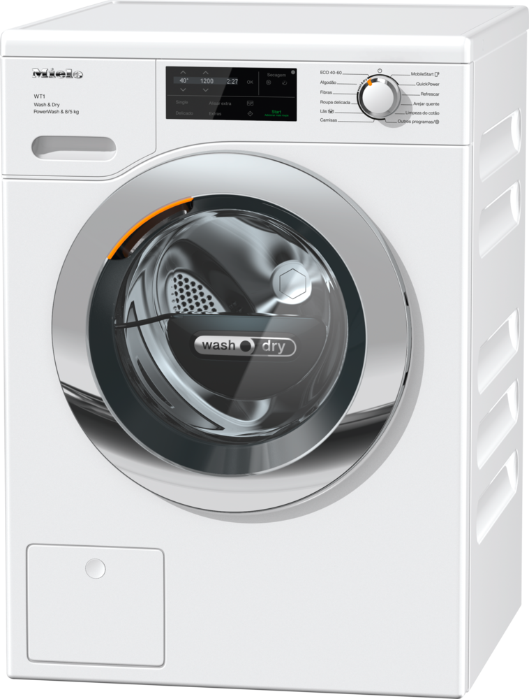 Máquina de lavar e secar roupa WT1 com QuickPower e Single Wash&Dry: lavar e secar de forma rápida e eficiente.